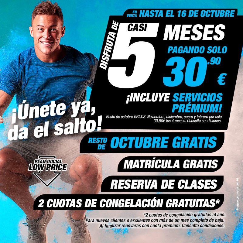 ◼ Este es un “PLAN LOW PRICE”. Los Planes y Cuotas de Inicio “LOW PRICE” sólo se pueden disfrutar una única vez en el año por usuario. Tenemos otras ofertas MUY interesantes en nuestro club, consúltalas.